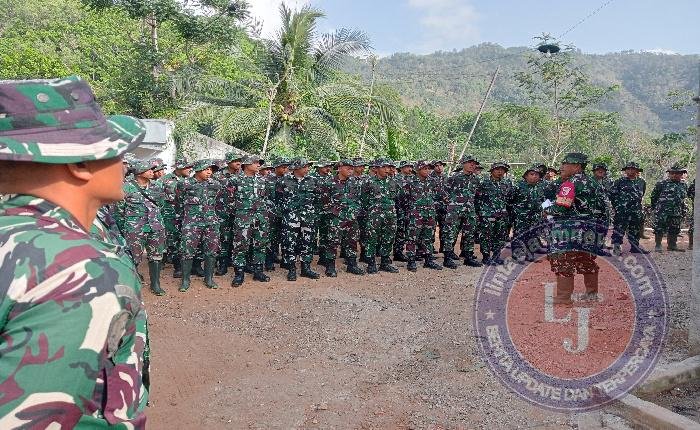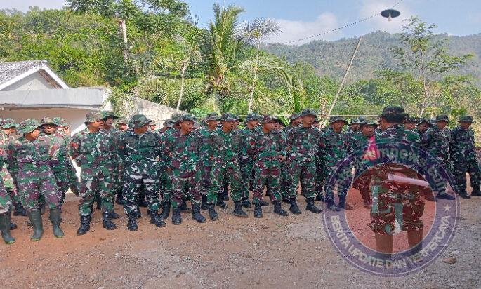 PACITAN lintasjatimnews – Memasuki hari kedua setelah resmi dibuka puluhan personel gabungan satgas TMMD Ke-126 melaksanakan apel pagi sebelum melaksanakan tugas pengerjaan sasaran fisik pembuatan Rabat jalan beton dan Rutilahu di Dusun Krajan, Desa Petungsinarang, Kecamatan Bamdar, Kamis (9/10 2025).