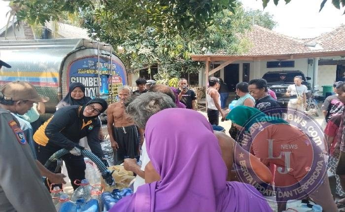 “Kami mendatangkan dua tangki air bersih untuk membantu warga Mengeng Selatan, Desa Kenduruhan. Semoga bisa dimanfaatkan sebaik-baiknya,” ujar AKP Marti.