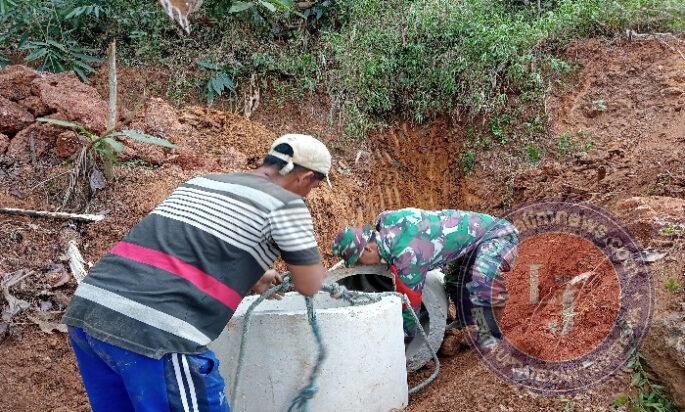 Satgas TMMD Ke-126 Kodim Pacitan Gotong Royong Bersama Warga Pasang Gorong-gorong