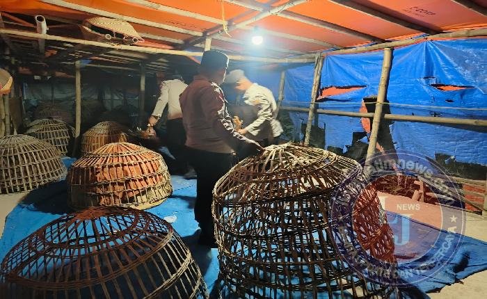Dalam penggerebekan tersebut, petugas mengamankan sejumlah barang bukti, antara lain 3 buah sangkar ayam, 2 ekor ayam, 1 buah bandang (alat adu ayam), dan 1 buah kiso (alat membawa ayam).