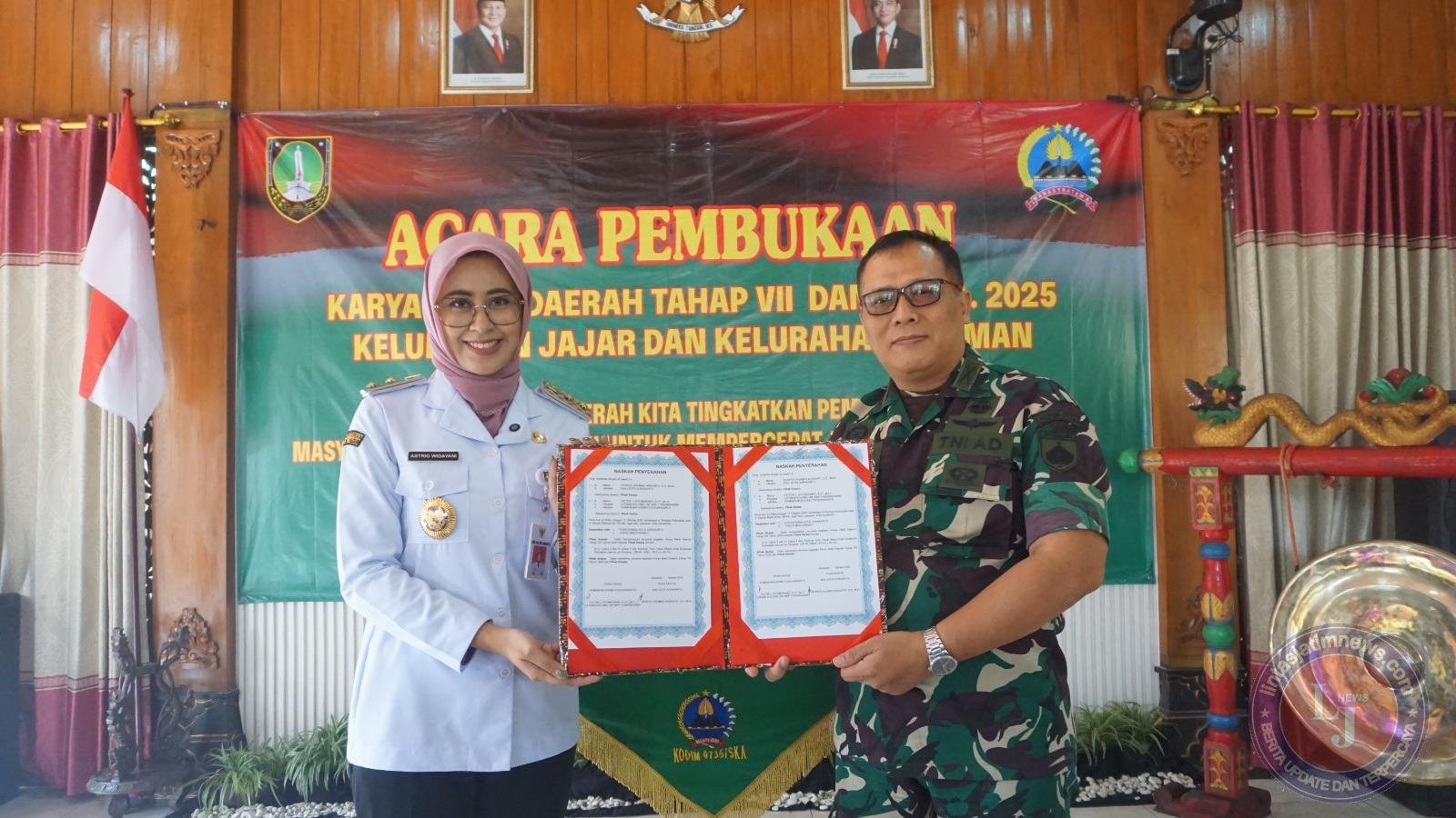 SURAKARTA lintasjatimnews – Bertempat di Pendopo Kelurahan Jajar Jl. Basuki Rahmat Kel. Jajar Kec. Laweyan telah dilaksanakan Pembukaan Karya Bakti Daerah (KBD) Tahap VII dan VIII Kelurahan Jajar dan Kelurahan Kauman Kota Surakarta Tahun 2025 dengan tema “Karya Bakti Daerah kita tingkatkan pemberdayaan masyarakat dan lingkungan untuk mempercepat akselerasi pembangunan di daerah guna memperkokoh persatuan dan kesatuan menuju terwujudnya ketahanan wilayah yang tangguh” yang diselenggarakan oleh Kodim 0735 Surakarta kerjasama dengan pemerintah kota Surakarta, Rabu (15/10/2025).