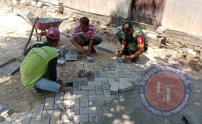 Babinsa Kodim Ponorogo Ikut Gotong Royong Pasang Paving Block Jalan