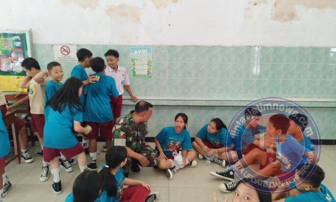 SURAKARTA lintasjatimnews – Babinsa Kelurahan Sudiroprajan Koramil 04/ Jebres Kodim 0735/Surakarta, Sertu Watono dan Koptu Devid S.W memberikan motivasi belajar kepada murid-murid SD Warga, Jl. Ir. Juanda No.72, Sudiroprajan, Selasa,(21/10/2025).