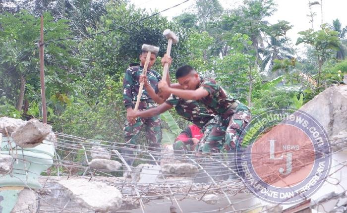 Rehab dilakukan karena kondisi bangunan lama sudah kurang layak digunakan sebagai fasilitas kesehatan. Personel Satgas TMMD bersama masyarakat terlihat bergotong royong membongkar bagian yang rusak dan menyiapkan material untuk pembangunan kembali.