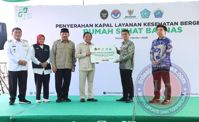 MANADO lintasjatimnews – Menteri Dalam Negeri (Mendagri) Muhammad Tito Karnavian selaku Kepala Badan Nasional Pengelola Perbatasan (BNPP) menyaksikan penyerahan bantuan dua unit kapal layanan kesehatan bergerak Rumah Sehat Badan Amil Zakat Nasional (Baznas) kepada Pemerintah Kabupaten (Pemkab) Kepulauan Talaud dan Pemkab Kepulauan Sangihe. Penyerahan tersebut dilakukan secara simbolis oleh Ketua Baznas RI Noor Achmad bersama Mendagri kepada Bupati Kepulauan Talaud Welly Titah dan Bupati Kepulauan Sangihe Michael Thungari di Dermaga Bay, Kota Manado, Sulawesi Utara (Sulut), Kamis (23/10/2025).
