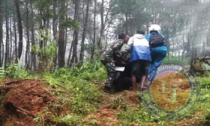 Tanpa menunggu perintah atau bantuan alat berat, ia langsung turun tangan. Sertu Hariyanto memimpin warga melakukan aksi darurat dengan peralatan seadanya, cangkul, sekop, dan tenaga gotong royong. Ia bahkan terlihat membantu mendorong sepeda motor pelajar yang terjebak lumpur agar bisa melanjutkan perjalanan ke sekolah. “Tebing setinggi 15 meter amblas akibat hujan deras semalam. Beruntung tidak ada korban jiwa, tapi jalan benar-benar tertutup total,” ujarnya di tengah proses pembersihan.