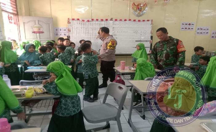 SURAKARTA lintasjatimnews – Babinsa Kelurahan Nusukan, Koramil 02/Banjarsari, Kodim 0735/Surakarta Serka Supadmo bersama dengan Bhabinkamtibmas Kelurahan Nusukan Aiptu Mujiono melaksanakan pendampingan dan pemantauan pendistribusian Makan Bergizi Gratis (MBG) bertempat di SD Muhammadiyah 3 Nusukan Jalan Singasari Utama Kelurahan Nusukan Kecamatan Banjarsari, Selasa (28/10/2025).
