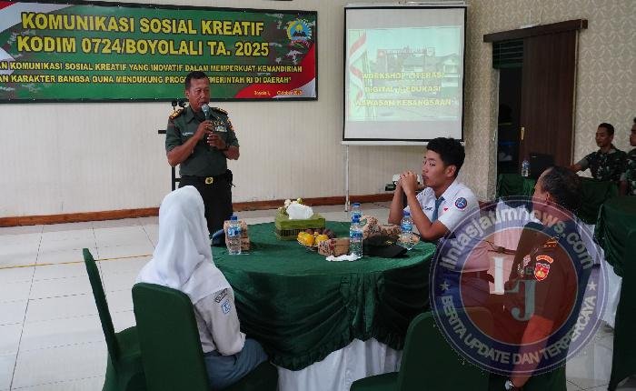 Kegiatan yang mengusung tema “Peran Komunikasi Sosial Kreatif yang Inovatif dalam Memperkuat Kemandirian dan Karakter Bangsa Guna Mendukung Program Pemerintah RI di Daerah” ini berlangsung di Aula Makodim 0724/Boyolali, Jl. Padanaran, Desa Tegalmulyo, Kecamatan Mojosongo, Kabupaten Boyolali, Rabu (29/10/25).