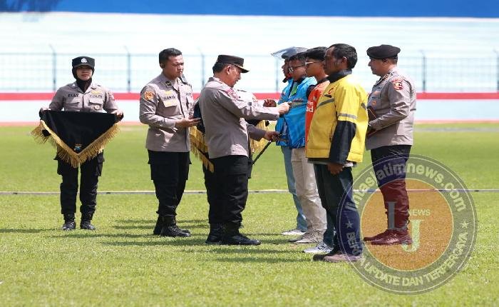 Ribuan peserta tampak memenuhi lapangan apel dengan seragam khas aplikator masing-masing, menampilkan semangat kebersamaan dan komitmen tinggi untuk mendukung terciptanya situasi kamtibmas yang aman dan kondusif.