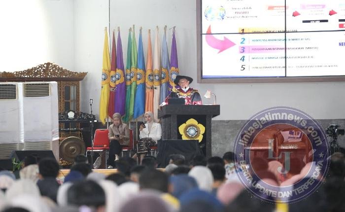 OGAN ILIR lintasjatimnews – Menteri Dalam Negeri (Mendagri) Muhammad Tito Karnavian menyampaikan orasi ilmiah pada acara Dies Natalis ke-65 Universitas Sriwijaya (UNSRI) di Auditorium UNSRI Kampus Indralaya, Kabupaten Ogan Ilir, Sumatera Selatan (Sumsel), Senin (3/11/2025). Dalam kesempatan tersebut, Mendagri yang juga Ketua Majelis Wali Amanat (MWA) UNSRI memaparkan peran penting pendidikan tinggi dalam mewujudkan Indonesia Emas 2045.