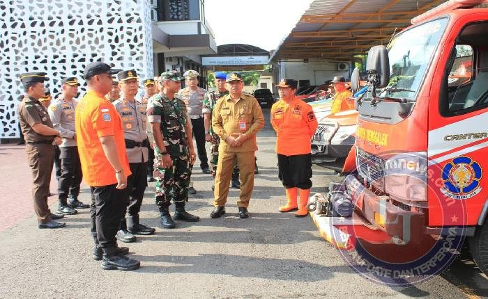 Usai apel, ketiga pimpinan, Dandim, Kapolres, dan Kalaksa BPBD melakukan pemeriksaan pasukan dan peralatan. Deretan kendaraan patroli, tenda darurat, hingga perahu karet satu per satu dicek kondisinya. Tak hanya itu, simulasi tanggap darurat juga digelar. Dalam skenario latihan, petugas mengevakuasi korban longsor di medan sulit, memperlihatkan kerja sama apik antarinstansi.