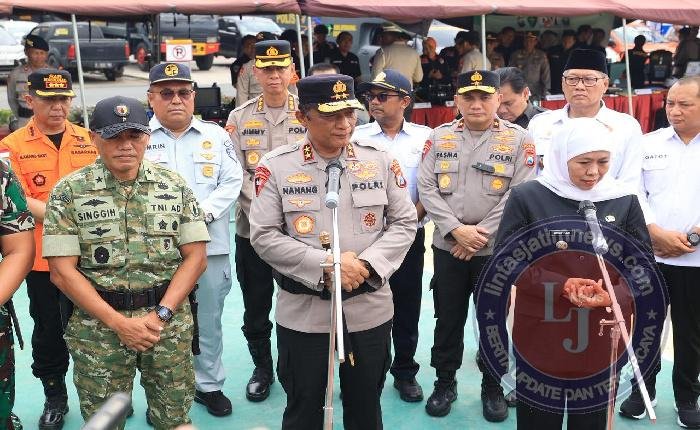 Irjen Pol Nanang menjelaskan, Polda Jatim menurunkan sekitar 1.400 personel gabungan dari berbagai instansi dalam apel ini.