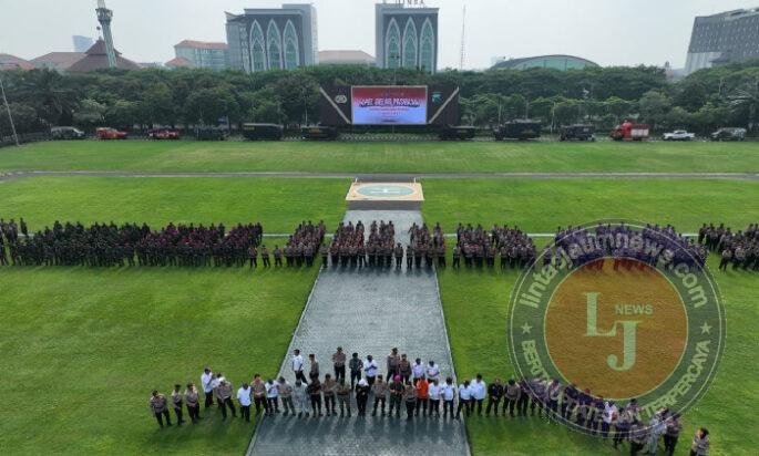 SURABAYA lintasjatimnews – Forum Koordinasi Pimpinan Daerah (Forkopimda) Jawa Timur melaksanakan Apel Gelar Pasukan Kesiapan Tanggap Darurat Bencana di Lapangan Apel Mapolda Jatim, Rabu (5/11/2025).