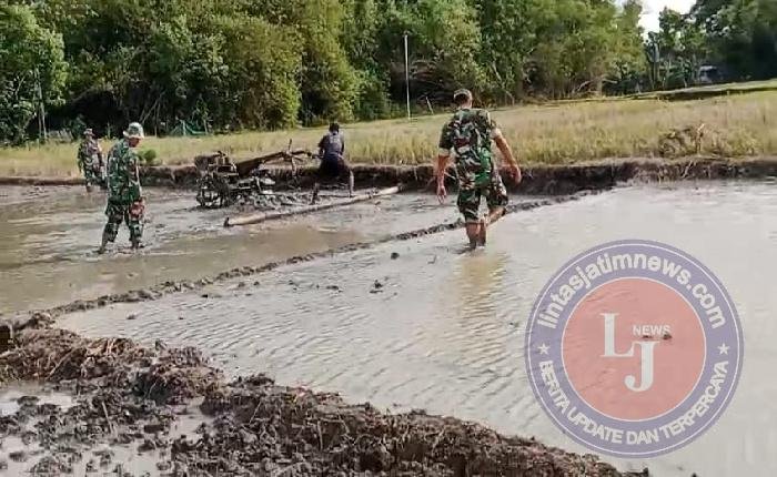 Dengan penuh semangat, Babinsa bersama para petani bergotong royong membajak dan meratakan lahan menggunakan traktor. Kegiatan ini tidak hanya sebagai bentuk dukungan fisik, tetapi juga sebagai ajang komunikasi sosial dan motivasi agar petani lebih bersemangat menyambut musim tanam.