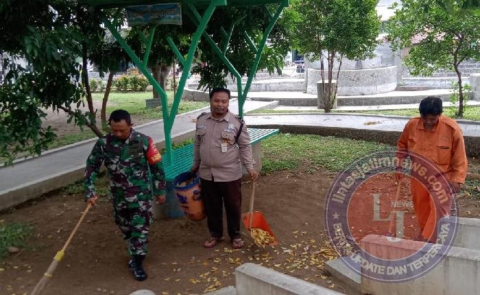 Wujudkan Lingkungan Yang Bersih, Babinsa Pelopori Kerja Bhakti Pembersihan Taman Cerdas Kelurahan Nusukan