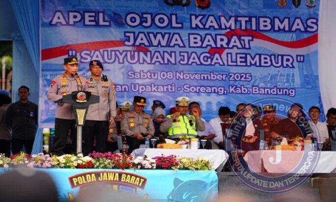 BANDUNG lintasjatimnews – Kapolri Jenderal Listyo Sigit Prabowo memimpin apel ojek online (ojol) kamtibmas ‘Sauyunan Jaga Lembur’ Polda Jawa Barat di Lapangan Upakarti, Soreang, Kabupaten Bandung, Jawa Barat (Jabar), Sabtu, 8 November 2025. Kegiatan ini merupakan sinergisitas untuk saling menjaga keamanan di lingkungan masyarakat.