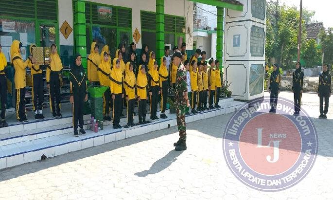 Babinsa Sawahan Latih Siswa MI Disiplin Lewat PBB dan Tata Upacara
