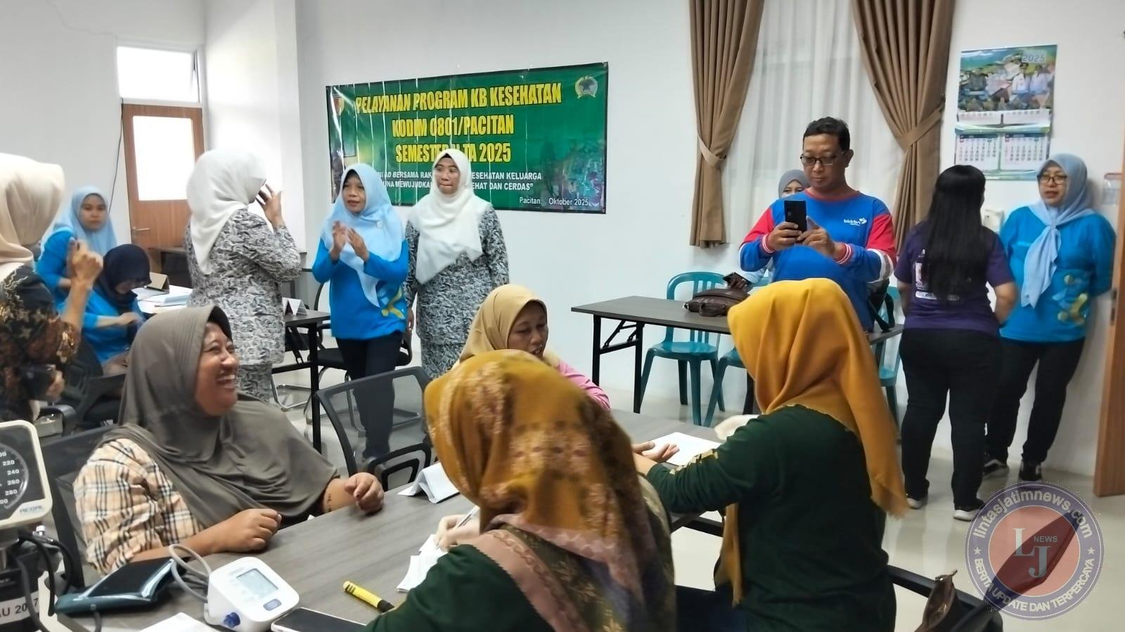 PACITAN lintasjatimnews – Kodim 0801/Pacitan bekerjasama dengan DPPKB Kabupaten Pacitan, Puskesmas bandar, dan BKKBN menggelar pelayanan KB Metode Kontrasepsi Jangka Panjang (MKJP), Implant dan MOW dalam rangka TNI Manunggal Bangga Kencana Kesehatan dan hari kontrasepsi sedunia tingkat Kabupaten Pacitan tahun 2025 di Puskesmas bandar, Kecamatan Bandar, Kabupaten Pacitan, Selasa (11/11/2025).