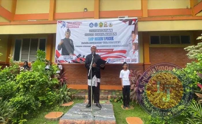 Dalam rangka memperingati Hari Pahlawan ke-80, SMP Negeri 1 Pucuk menggelar Upacara Bendera dan Penampilan Drama Kolosal yang berlangsung khidmat di halaman sekolah, Senin (10/11/2025).