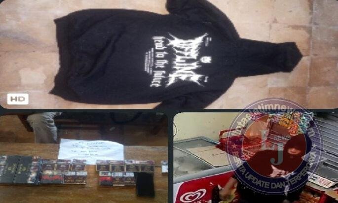 “Dari tangan para pelaku, kami amankan sejumlah barang bukti berupa rokok berbagai merek, uang tunai Rp39.000, satu unit handphone, serta jaket hoodie hitam bertuliskan ‘OFFLINE’ yang digunakan saat beraksi,” jelas Iptu Mustofah.