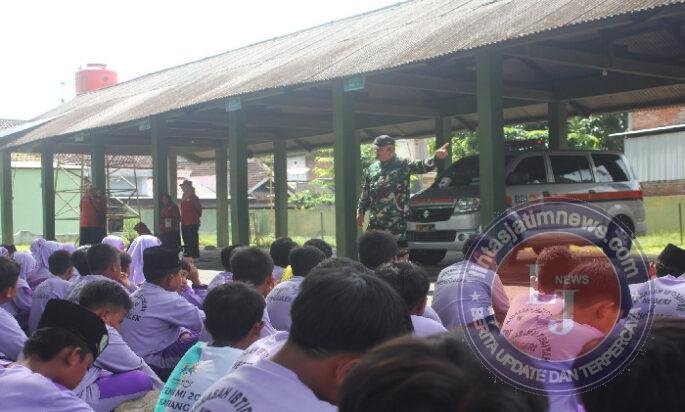 Memasuki sesi berikutnya, Pelda Suwoto memberikan materi mengenai Pancasila sebagai dasar negara. Dengan narasi yang kuat dan penyampaian yang tenang, ia mengajak siswa memahami makna tiap sila melalui ilustrasi yang dekat dengan kehidupan sehari-hari. Para siswa pun larut dalam penyampaian yang interaktif dan mudah dipahami.