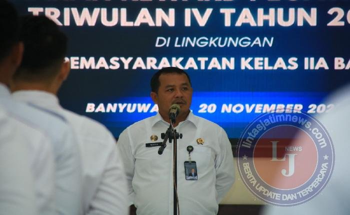Acara tersebut dipimpin secara langsung oleh Kepala Lapas (Kalapas) Banyuwangi, I Wayan Nurasta Wibawa, dan dihadiri oleh seluruh pegawai, mulai dari pejabat struktural hingga staf, sebagai bentuk komitmen dalam meningkatkan kualitas kinerja dan pelayanan.