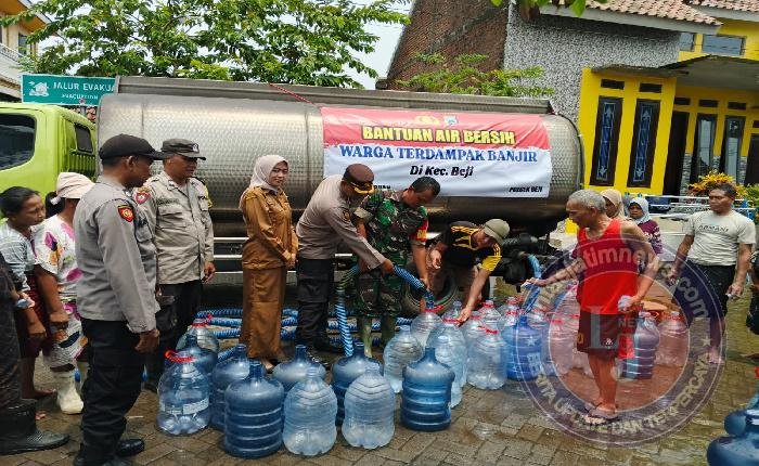 Polsek Beji Salurkan 9 Ribu Liter Air Bersih untuk Warga Terdampak Banjir di Kedungringin