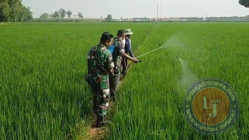 Cegah Hama Tanaman, Babinsa Bantu Semprot Padi Petani
