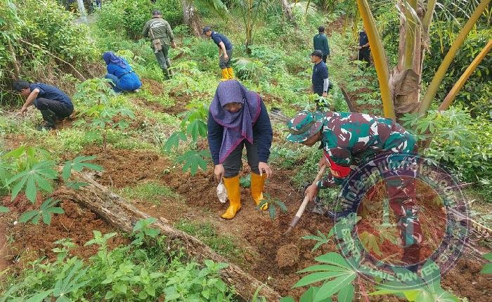 Suasana penanaman tampak guyub. Anggota TNI, perangkat kecamatan, dan warga Desa Gemaharjo saling bahu-membahu menyiapkan lubang tanam hingga memastikan bibit berdiri tegak dan siap tumbuh. Kebersamaan ini menghadirkan semangat positif bahwa aksi kecil dapat membawa dampak besar bagi keberlanjutan alam.