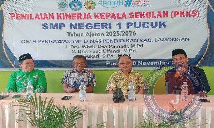 LAMONGAN lintasjatimnews – Upaya meningkatkan mutu layanan pendidikan terus dilakukan di berbagai satuan pendidikan. Salah satunya melalui kegiatan Penilaian Kinerja Kepala Sekolah (PKKS) yang kali ini berlangsung di SMP Negeri 1 Pucuk, Jumat (28/11/2025). Tiga pengawas dari Dinas Pendidikan Kabupaten Lamongan hadir tidak hanya sebagai penilai, tetapi juga memberikan pendampingan profesional demi perbaikan kinerja sekolah secara berkelanjutan.