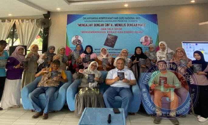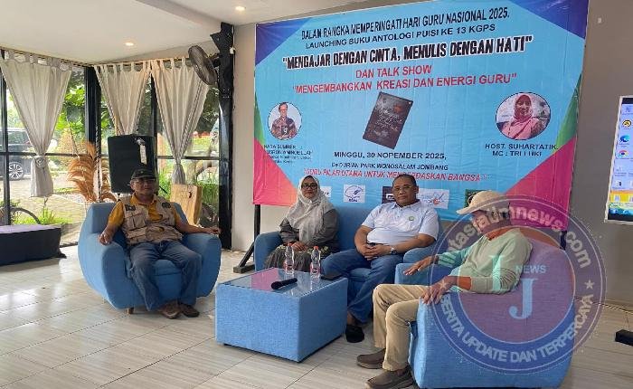 JOMBANG lintasjatimnews – Komunitas Guru Penulis Sidoarjo (KGPS) sekali lagi meluncurkan buku antologi puisi mereka yang baru. Bertajuk “Mengajar Dengan Cinta, Menulis Dengan Hati”, buku ini merupakan penerbitan yang ke-13, ditulis oleh 17 anggota KGPS dan 11 penulis tamu. Acara launching buku tersebut digelar sederhana di hall agrowisata & pendidikan, De Durian Park, Wonosalam Jombang, Minggu siang (30/11).