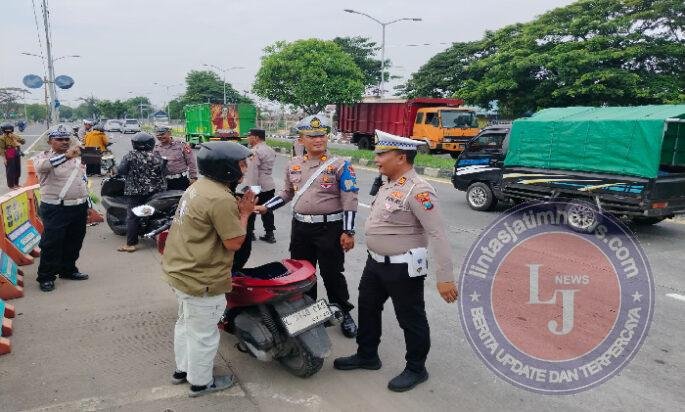 Petugas menyisir area jembatan untuk memantau arus lalu lintas sekaligus memberikan edukasi langsung kepada pengguna jalan.