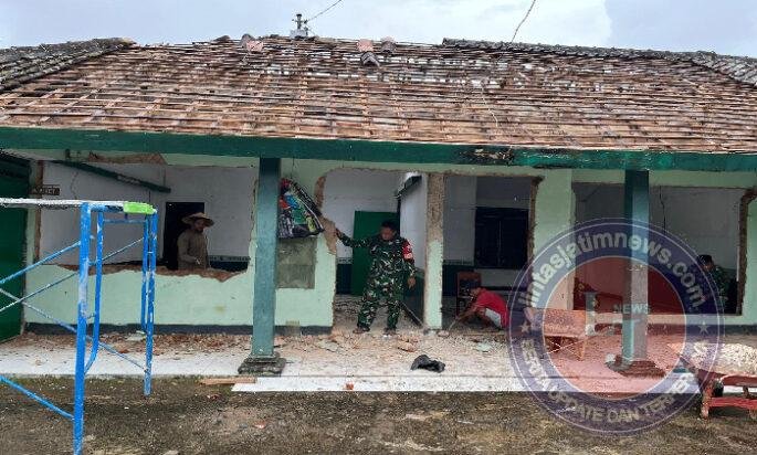 PACITAN lintasjatimnews – Suasana penuh semangat dan kebersamaan terlihat di halaman Kantor Koramil 06/ Bandar Kodim 0801/Pacitan saat jajaran Danramil bersama Babinsa dan pekerja bergotong royong melakukan pembongkaran bangunan lama kantor yang sudah mulai rusak dan usang dimakan usia.