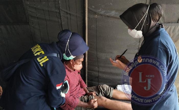 KUALASIMPANG lintasjatimnews — Tenaga kesehatan (nakes) Polri dari Biddokkes Polda Aceh terus menunjukkan kepeduliannya terhadap warga terdampak banjir dengan membuka layanan kesehatan gratis di Posko Tanggap Darurat yang berlokasi di depan Polres Aceh Tamiang.
