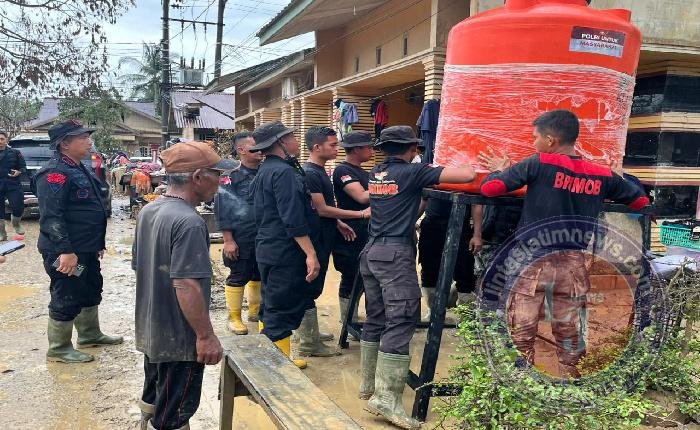 Salah seorang warga Desa Durian menyampaikan apresiasinya atas bantuan tersebut. “Sejak banjir, kami kesulitan mendapatkan air bersih. Kehadiran tandon air dari Brimob sangat membantu kebutuhan kami sehari-hari,” tuturnya.