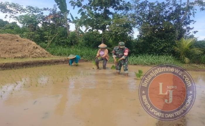 Kegiatan pendampingan tersebut dilaksanakan baru-baru ini sebagai bagian dari upaya mendukung program ketahanan pangan serta meningkatkan produktivitas pertanian di wilayah binaan. Penanaman padi dilakukan secara gotong royong oleh para petani dengan didampingi Babinsa.