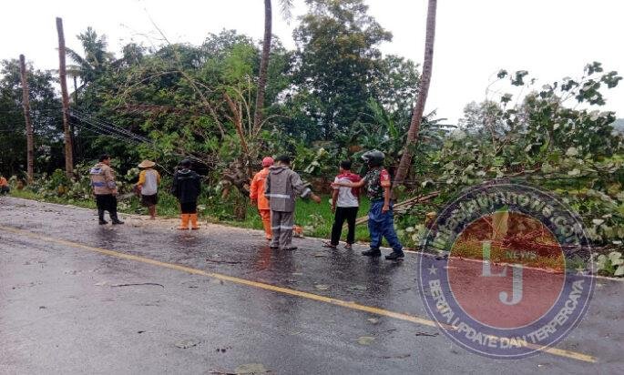 Dengan peralatan seadanya, tim gabungan bahu-membahu memotong batang dan dahan pohon waru yang melintang di jalan nasional. Koordinasi yang solid antara TNI, Polri, BPBD, dan masyarakat menjadi kunci percepatan penanganan, meskipun cuaca belum sepenuhnya bersahabat.