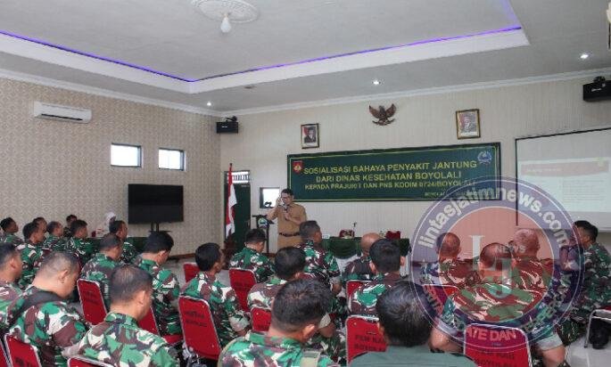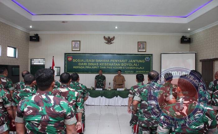 BOYOLALI lintasjatimnews – Dalam upaya meningkatkan kesadaran akan pentingnya kesehatan serta pencegahan penyakit tidak menular, khususnya penyakit jantung, Kodim 0724/Boyolali bekerja sama dengan Dinas Kesehatan Kabupaten Boyolali menggelar sosialisasi dan penyuluhan kesehatan tentang bahaya penyakit jantung. Kegiatan ini berlangsung di Aula Makodim 0724/Boyolali, Jalan Padanaran, Desa Tegalmulyo, Kecamatan Mojosongo, Kabupaten Boyolali, Senin (22/12/2025).