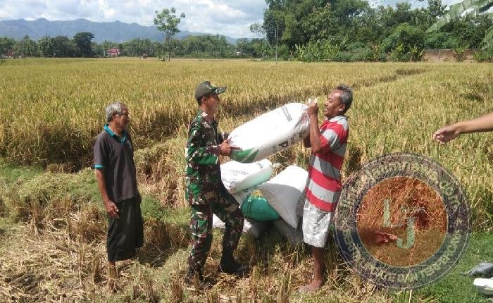 Petani Panen, Babinsa Kodim Ponorogo Bantu Angkat Gabah