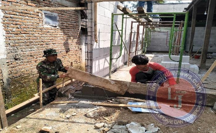 MADIUN lintasjatimnews — Babinsa Desa Sendangrejo, Sertu Prapto, melaksanakan kerja bakti pembangunan rumah milik Bapak Sukiran, warga RT 13 RW 02 Dusun Butuh, Desa Sendangrejo, Kecamatan Madiun, Kabupaten Madiun, Selasa. Kegiatan tersebut dilakukan bersama masyarakat setempat sebagai wujud kepedulian dan kebersamaan dalam membantu warga yang membutuhkan.