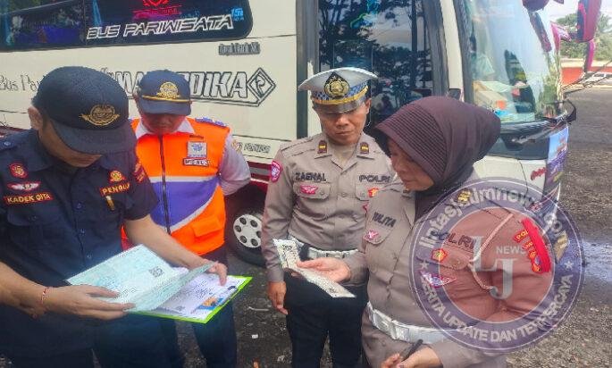 Pemeriksaan difokuskan pada kelengkapan administrasi kendaraan, uji laik jalan, serta kondisi teknis kendaraan meliputi sistem pengereman, kondisi ban, fungsi pintu darurat, dan perlengkapan keselamatan lainnya.