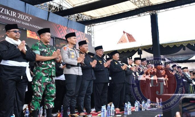 PONOROGO lintasjatimnews – Komandan Kodim 0802/Ponorogo Letkol Arh Farauk Saputra tadi pagi menghadiri kegiatan Bumi Reog Berdzikir (BRB) tahun 2025 bertempat di Aloon Aloon Kabupaten Ponorogo, Minggu (28/12/2025).
