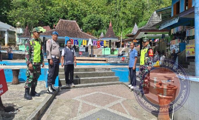 Salah satunya personel gabungan TNI Polri dan juga Instansi terkait lainya yang sedang melakukan pos pemantauan di lokasi wisata pemandian air hangat tirta husada, Desa Karangrejo, Kecamatan Arjosari, Kabupaten Pacitan, Minggu (28/12/2025).