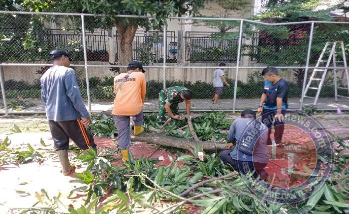 “Kegiatan ini juga bertujuan untuk mengantisipasi kerawanan pohon tumbang atau roboh apabila terjadi hujan dan angin kencang, Sehingga sangat berbahaya bagi warga sekitar apabila melaksanakan olahraga di lapangan.”terangnya.