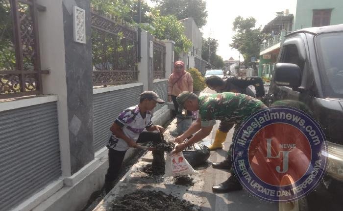 SURAKARTA lintasjatimnews – Bertempat di Wilayah RT 03 RW 06 kp Mangkubumen Kulon Kelurahan Mangkubumen kecamatan Banjarsari, Babinsa Kelurahan Mangkubumen Koramil 02/Banjarsari Kodim 0735/Surakarta Pelda Sujiianto bersama dengan warga masyarakat melaksanakan kegiatan kerja bakti pembersihan parit dan selokan, Senin (29/12/2025).