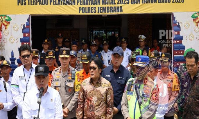 JEMBRANA lintasjatimnews – Kakorlantas Polri Agus Suryonugroho bersama Menteri Perhubungan Dudy Purwagandhi meninjau Pelabuhan Gilimanuk, Senin (29/12/2025), guna memastikan kesiapan pengamanan dan pelayanan angkutan selama Operasi Natal 2025 dan Tahun Baru 2026.