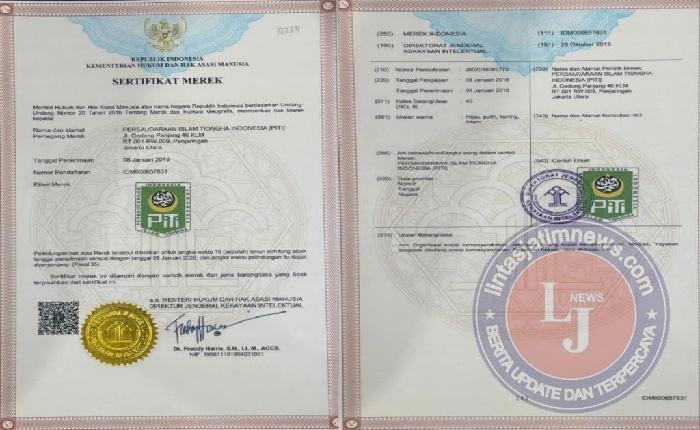 Sertifikat negara adalah bukti tertinggi atas kepemilikan merek. Fakta hukum menunjukkan, merek PITI telah terdaftar secara sah dan memperoleh perlindungan penuh negara melalui Direktorat Jenderal Kekayaan Intelektual (DJKI), Kementerian Hukum dan HAM RI.