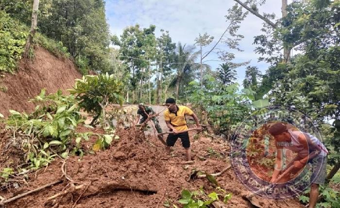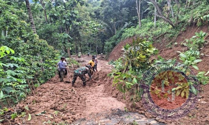 Hujan Deras Picu Longsor di Desa Mendak, TNI dan Warga Bergerak Cepat Bersihkan Akses Jalan