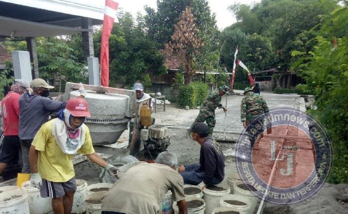 SRAGEN lintasjatimnews – Dalam upaya mendukung pembangunan infrastruktur desa, Sertu Wiyono Babinsa Desa Cemeng dan anggota Koramil 09/Sambungmacan Kodim 0725/Sragen dan warga melaksanakan kerja bakti pengecoran jalan sepanjang 400 meter dengan lebar 2 meter di Desa Cemeng, Senin (05/01/2026).