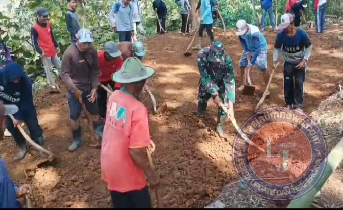 PONOROGO lintasjatimnews – Sertu Suyatno anggota Koramil Tipe C 0802/18 Sooko, Kodim 0802/Ponorogo kemarin (Senin, 05/01) ikut kerja bakti di Dusun Bulu Desa Suru Kecamatan Sooko Kabupaten Ponorogo, Selasa (06/01/2025).